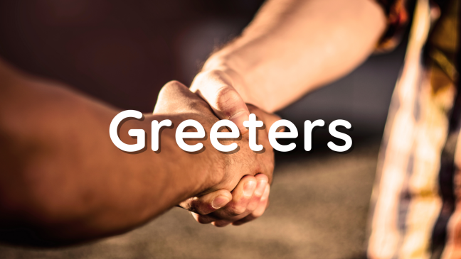 Greet "familiar faces" and welcome visitors and guests before services, either at the entry doors or by the Welcome center. Training is provided.